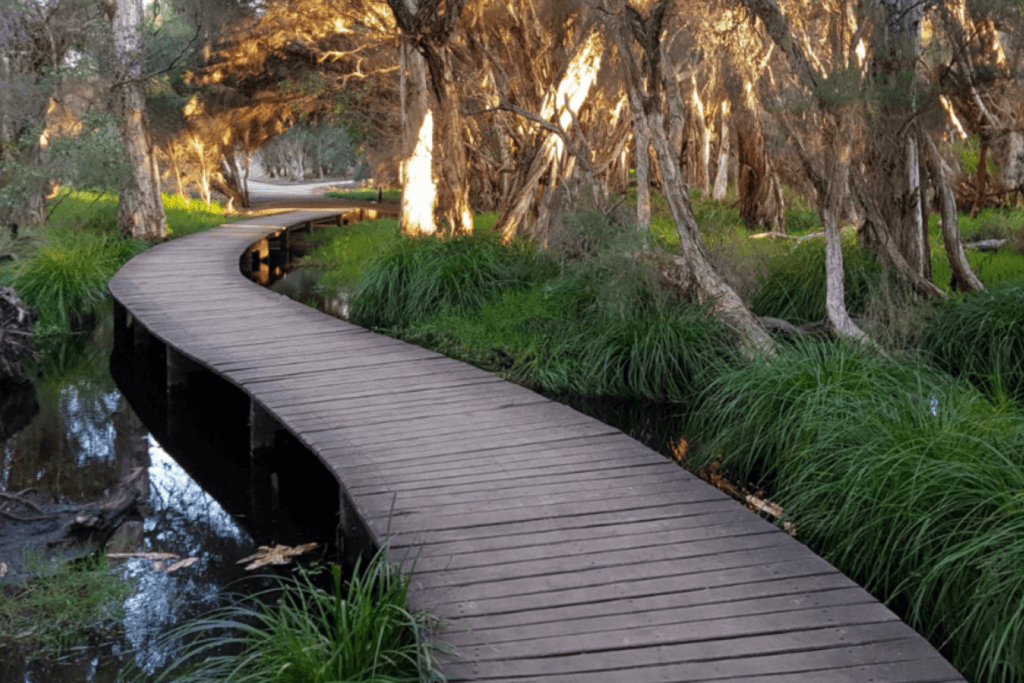- Carine Regional Open Space (Carine) – A 2.4 km loop on concrete and limestone paths around Carine Wetland. Flat and accessible for wheelchairs and prams, with picnic areas, playgrounds, and birdwatching opportunities.